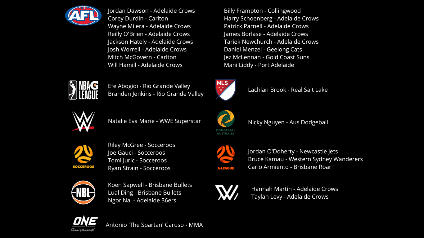 PRO ATHETES WE'VE WORKED WITH: